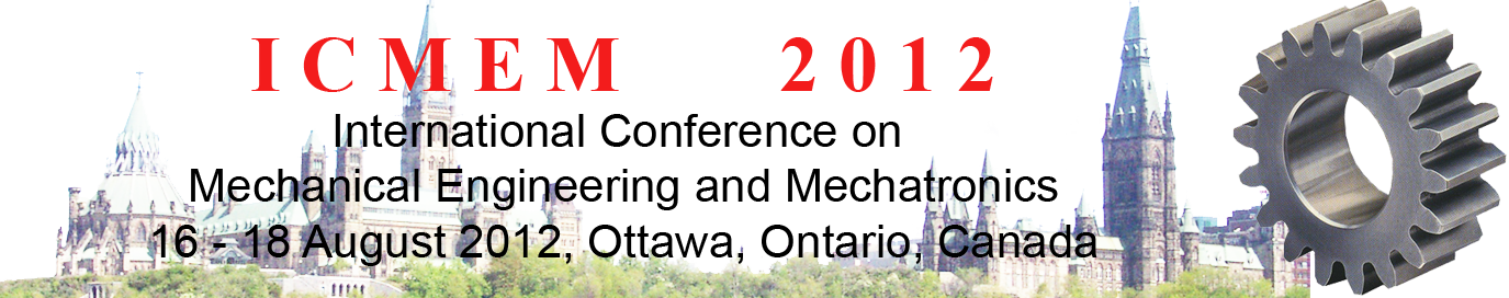 ICMEM is a comprehensive conference covering all the various topics of Mechanical Engineering (Fluid and Solid Mechanics), Robotics, Aerospace, and Mechatronics. The aim of the ICMEM 2012 is to gather scholars from all over the world to present advances in the aforementioned fields and to foster an environment conducive to exchanging ideas and information. This conference will also provide a golden opportunity to develop new collaborations and meet experts on the fundamentals, applications, and products of Mechanical Engineering and Mechatronics. We believe inclusive and wide-ranging conferences such as ICMEM can have significant impacts by bringing together experts from the different and often separated fields of Mechanical Engineering (Fluid and Solid Mechanics) and Mechatronics, creating unique opportunities for collaborations and shaping new ideas for experts and researchers.